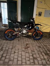 La moto monta: Maxi kit tpr 86 Carburatore polini 30 Pacco lamellare malossi vl 18 Colettore polini 360 Filtro nibbi Accensione pvl polini nuova Scarico completo krm passagio basso 80/90 Ammortizzatore dietro ycf con regolazione Desmo cambio top Frizione top Cestello frizione top Doppio radiatore cr 125 Carter e cilindro lavorati Gas rapido domino Estetica: Cerchi bi color Piatta yz con faretto Parafango yz Plastiche fatte un carbonio Porta targha pieghevole Sella nera Tubi radiatori rossi e neri
