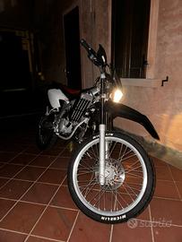 Vendo a malincuore la mia prima moto, un bellissimo malaguti xtm 50cc, (guidabile a 14 anni con la patente AM essendo un 50ino) tenuta molto bene con lievi segni di usura. Mai incidentata, sempre lasciata riscaldare, sempre lasciata al chiuso. La moto monta modifiche estetiche come i convogliatori laterali ktm, la mascherina vface, parafango anteriore yz, paramani circuit e monta anche uno scarico completo (pancia + terminale) della giannelli ed omologato. Oltre allo scarico la moto è originale (e per essere originale va molto), presenta anche il miscelatore di serie e l'anno scorso ho comprato le nuove gomme semitassellate della Michelin e sono ancora in condizioni perfette siccome utilizzata poco. Ho sempre effettuato rabbocco d'olio ogni 500km e cambio olio ogni 1500km.