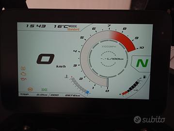 La moto è completa di tris di valigie originale, traversino Givi porta navigatore/telefono, supporto maggiorato cavalletto laterale