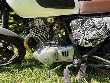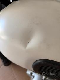 Si presenta bene, gli unici danni che ha sono due ammaccature sul serbatoio e la crepatura di una parte plastica vicino alla manopola sinistra. Preciso inoltre che la freccia destra non funziona.