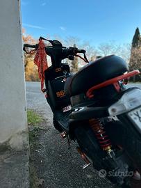 vendo a malincuore booster spirit 50 biposto al momento monta j seguenti componenti: cilindro tpr 70 alluminio monofascia (600km) carburatore phbg 21 dell’orto filtro a torta stage 6 variatore completo malossi ammortizzatore posteriore maggiorato marmitta stage 6 al momento non monta il miscelatore ma e possibile rimetterlo in piu cedo anche : carene originali cilindro originale scatola filtro prezzo trattabile
