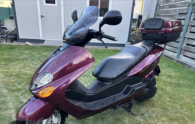 Vendo in ottimo stato mbk skyliner rosso bordeaux , dotato di bauletto . Km.30.000 circa , tagliandato, revisionato , bollo pagato.