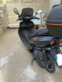 Vendo scooter MBK Skyliner 150cc di colore blu. Lo scooter è dotato di cupolino originale e bauletto, sella originale in condizioni perfette come nuova, senza strappi o rattoppi. Scooter perfettamente funzionante e marciante utilizzato solo il periodo estivo, appena effettuato tagliando con cambio filtro aria, filtro olio, candela nuova, batteria nuova e cambio olio. Necessità di sostituire entrambe le gomme e poi effettuare revisione. Bollo già pagato. Costo passaggio di proprietà a spese dell'acquirente. Per info contattatemi pure.