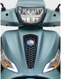 Tutta la sportività di Piaggio Medley S prende forma con un design grintoso ed elegante, esaltato dalle finiture total black in tutti i suoi dettagli, completati dalle decalcomanie blu a contrasto sui cerchi e sulla inconfondibile cravatta a nido d'ape.