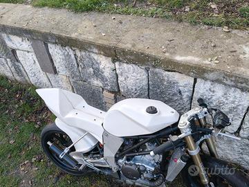 Moto completamente nuova, eccetto radiatore e forcellone posteriore, completa di tutto tranne pinza freno anteriore, carena anteriore e puntale da finire di montare.