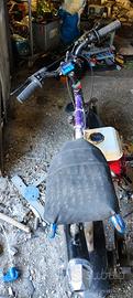 Minibike autocostruito in America vanno molto,motore 4 tempi di 200cc oltre 10 cavalli molle valvole maggiorate comdotti lucidati ingranaggio gammes in acciaio carburatore 28 mm limitatore di giri eliminato,friizione centrifuga trasmissione a catena freno anteriore a disco posteriore a tamburo gomme tasselate, marmitta racing velocità oltre 80 km/h.io sono arrivato a 80 perchè rettelinio terminato e peso 100 kg,pezzi e accessori presi in America e Inghilterra,il piccoletto avrà fatto 100 km