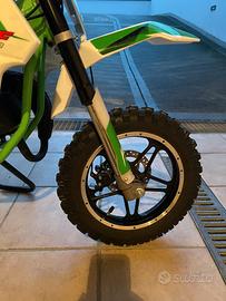 Vendo per passaggio a moto diversa, MINI CROSS come da foto, MOTORE 50cc 2 TEMPI- COLORE VERDE- ACCENSIONE A STRAPPO- RUOTE 10/10 ACQUISTATO AD AGOSTO'2024. Pochissimi kilometri effettuati (30km) , pari al nuovo