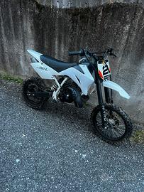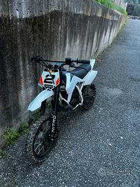 Moto cross 50 cc 2 tempi accensione a pedivella replica KTM perfettamente funzionante un vero e proprio missile in miniatura Monta: Gas rapido Carburatore 19 dell orto Filtro carburatore malossi Scarico leovince Gomme da 14-12 Corona maggiorata Ammortizzatore centrale regolabile Moto per pista non è un giocattolo non scambio No perditempo nuova costa 900€