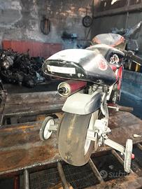 Vendo bellissima Mini moto del 2005 cilindrata 50cc benzina completa di rotelle. Usata solo una volta e poi ferma per 10 anni in garage. La mini Moto ha solo 5km un pò con qualche graffio del tempo ma in ottime condizioni e parte al primo colpo.