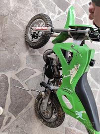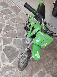 Mini moto cross di mio figlio, vendo per inutilizzo. marciante, cambiato anche uno pneumatico recentemente. colore verde con disegni ma la vernice può essere rimossa per tornare al colore originale (grigio) Ritiro zona Santarcangelo. cedo anche tanica piena con miscela.