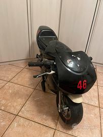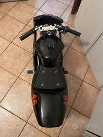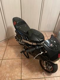 La moto non l'ho mai accesa e mai messo benzina , e in mio possesso da 6 anni ,però dovrebbe essere funzionante! È da pista fa i 50km/h le informazioni sotto sono casuali , non ne ho idea che marca è