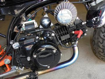 Mini moto Motor Union JC 90cc di cilindrata, targata con libretto di circolazione e quindi necessita il passaggio di proprietà, 3 marce con frizione semi automatica, moto unica nel suo genere perché è stata fatta fare anni fa apposta così, l'ho sempre tenuta in casa quindi tutti i liquidi sono stati svuotati, prima di metterla in casa l'ho usata qualche volta e andava benissimo, Chi volesse prenderla ha due alternative, o togliere l'immatricolazione per tenersela in casa esposta dato che é stupenda e quindi eliminare la targa oppure se la vuole utilizzare in strada far fare la revisione, rimettere i vari liquidi e accenderla, oltre alla moto do di ricambio le candele e le pastiglie del freno anteriore, per altre informazioni o foto contattatemi senza problemi.