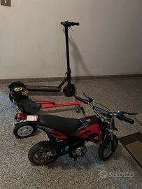 Vendo mini moto elettrica con telaio in acciaio come una mini moto a scoppio un monopattino elettrico e un over board con apposito seggiolino vendo per inutilizzo se interessati contattare a 3403425340