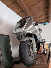 Non conosco la storia, ho comprata usata 2 anni fa in valdaosta, gli ho dato una sistemata,carburata, riverniciata, cambiato le gomme, fatta partire e messa sul mobile in camera.