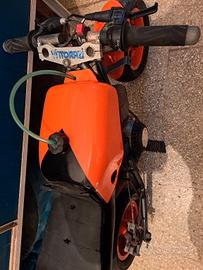 vendo mini moto da ripristinare montare catena e controllare dove gira la catena al motore frizione. bulloneria e catena presenti. il motore a una bella compressione prima da smontarla era funzionante. prezzo 100€. zona cinecittà.