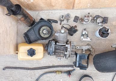 vendo telaio mini moto con: marmitta,gruppo termico, carburatore, e altri pezzi in foto (tutto da controllare). non spedisco, ritiro a mano, prezzo poco trattabile