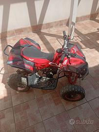 Vendo bellissimo Mini Quad a scoppio, ideale per bambini e ragazzi che vogliono approcciarsi al mondo del fuoristrada in totale divertimento e sicurezza. Il mezzo è in ottime condizioni estetiche e meccaniche, come visibile in foto. Caratteristiche principali: Tipologia: Mini Quad sportivo (ATV per bambini). Motore: Monocilindrico 2 tempi (miscela). Avviamento: Easy-start a strappo (molto leggero). Sicurezza: Dotato di limitatore di velocità e laccetto di sicurezza (spegnimento immediato in caso di caduta). Ciclistica: Doppio ammortizzatore anteriore e mono posteriore per assorbire al meglio le asperità del terreno. Freni: Sistema a disco per una frenata pronta e sicura.