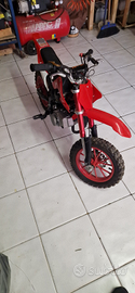 Vendo minicross 49cc a miscela 2% accesa ed utilizzata 1 ora, mio figlio ha paura. Ruota da 10 monomarcia, accensione rinforzata in lega e spegnimento tramite chiave. Moto praticamente pari al nuovo, solo plastica posteriore con segno di caduta. Pagata 350 euro a giugno, vendo ad euro 300