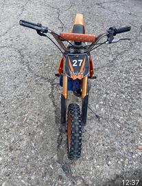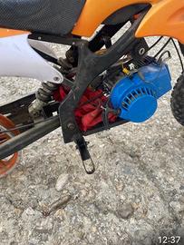 Vendo mini cross con motore comprato nuovo e usato pochissimo. Manca copertone posteriore e va pulito il carburatore.
