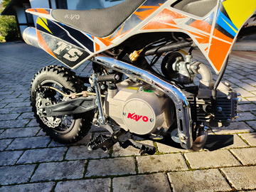 Minicross kayo ts 90, cilindrata 88cc, ruota post 10 pollici, anteriore 12, semiautomatica 4 marce, avviamento sia pedale che elettrico, freni a disco idraulici, praticamente come nuova e perfettamente funzionante, ideale per bambini dai 6 anni o alti almeno un metro e venti, vendo per cambio tipologia. Prezzo leggermente trattabile
