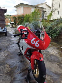 Unici difetti sono le carene che sono buone ma da sistemare qualche graffio sul forcellone e il freno posteriore che ho rimontato quello a pedale ma ha bisogno di essere riguardato.