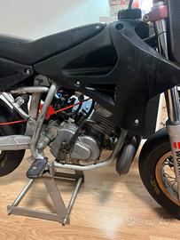 minimotard polini 70 cc ad aria in condizioni ottime se non inpeccabili. Motore (cilindro pistone biella e testata) appena rifatto solo con pezzi originali polini con meno di 5 h di utilizzo, carburatore dell orto 19, gas rapido domino, gomme PMT hard al 70%. Telaio in ottime condizioni NON piegato e MAI saldato (mai rotto).