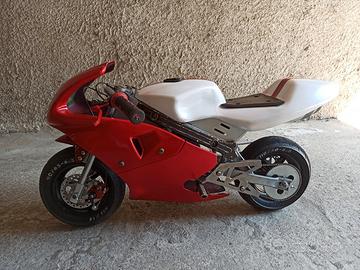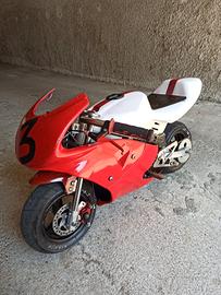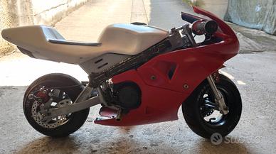 Vendo minimoto 50cc 2 tempi a miscela. Appena revisionata: - Carburatore pulito, - Candela nuova - Gomme al 80%. Meccanica affidabile e telaio robusto, ideale per imparare. La minimoto presente qualche segno di usura e lievi sbecchi sulle plastiche. In aggiunta a corredo regalo telaio aggiuntivo e set di gomme (da detallonare dai cerchi) Vista e piaciuta. Non spedisco.