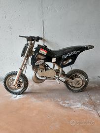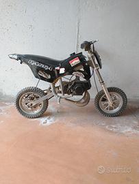 vendo minimoto da cross, cilindrata 50 cc, utilizzabile solamente in aree private. Viene venduta come parti di ricambio poichè è stata utilizzata fino a 6 anni fa, poi è stata messa in garage e mai più utilizzata per cui è necessario ricontrollare il tutto prima di rimetterla in moto.