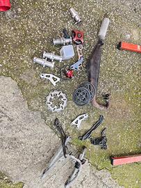 Pezzi di ricambio vari, corone e catene, marmitta polini, pignoncino, pompa dell'acqua, mozzi vari.
