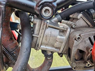 Minimoto DM 50 cc malossi, forcellone posteriore allungato, disponibile anche quello originale corto. Ammortizzatore di sterzo. Raffreddamento a liquido.
