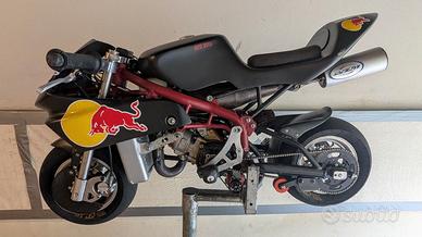 Minimoto telaio MEDOS (entrambe) motore Polini raffreddato aria (moto blu) / motore BZM liquido carter oro (moto nera). Entrambe con ammortizzatore sterzo Gubellini / freni a liquido (a filo solo il posteriore moto nera). Ricambi (intercambiabili in quanto i telai MEDOS sono gemelli) + 4 cerchi + Cavalletto alto. Carene riverniciate in carrozzeria. Minimoto (funzionanti) inutilizzate da tre anni.