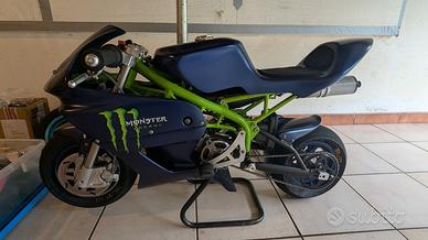 Minimoto telaio MEDOS (entrambe) motore Polini raffreddato aria (moto blu) / motore BZM liquido carter oro (moto nera).