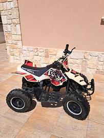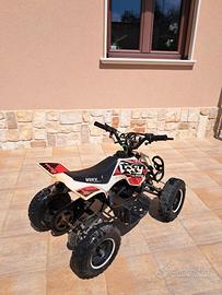 Vendo Miniquad marca Viki moto 50cc, modello raptor , 2 tempi, accensione a strappo con sistema di spegnimento al polso in caso di caduta, usato ma in ottime condizioni, parte immediatamente ed ha la possibilità di limitare il gas .