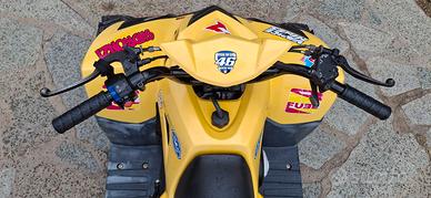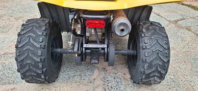 Vendo introvabile Quad Dinli Cobia 50 per bambini motore 49 cc 4 tempi con tappo di sicurezza in caso di caduta e antenna di spegnimento tramite telecomando a distanza. Quad con trazione posteriore, freni a disco perfettamente funzionante in tutto compreso di luci anteriori e posteriori con stop. Acquistato qualche anno fa nuovo in negozio ufficiale quad e pagato 1800...non si tratta di un prodotto cinese. Prezzo trattabile dopo visione.