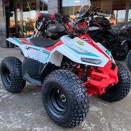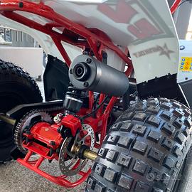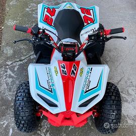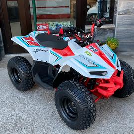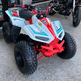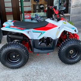 Miniquad monomarcia per bambini 110cc con motore monocilindrico 4 tempi, avviamento elettrico, doppi freni a disco anteriori e uno posteriore, pneumatici da "7, peso kg.92.