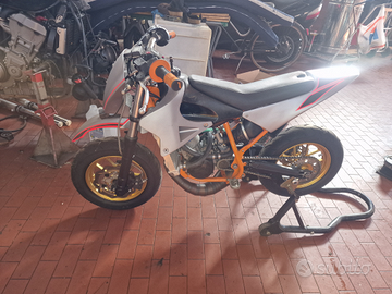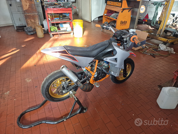 Vendo minimotard polini 94 cc con motore nuovo 1L all'attuale dimostrabile con cilindro 2FAST 94 CC. albero dedicato marmitta fatta su misura cerchi ricavati dal pieno pompa acqua elettrica gomme nuove ammortizzatore di sterzo..... dischi flottanti idraulica davanti e dietro... qualsiasi prova. Solo messaggi