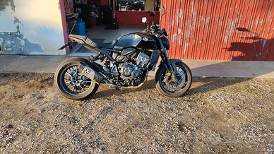 Vendo Honda CB1000 r Black Edition 145 cavalli. La moto è perfetta come appena uscita dalla concessionaria. Ha solo 7500 km. La catena è ad alta scorrevolezza per le corse. Scarico completo akrapovich e gomme da pista pirelli al 30 %. Il porta targa spostato dal piccolo parafango ruota è posizionato sotto il sellino guadagnando notevole impatto estetico. sono stati spesi più di 3000 euro solo di modifiche tra scarico, centralina, catena, manodopera e gomme da pista. Tagliando appena eseguito. Prezzo trattabile ma di poco . Naturalmente ho tutti i pezzi originali. Chiamare solo se realmente interessati. Posso inviare altre foto più dettagliate e con maggior risoluzione a richiesta