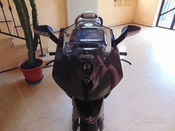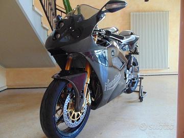 [QuattroruotePro:51357] MOTOZOOM PROPONE: MONDIAL PIEGA CARBONIO PER APPASSIONATI COLLEZIONISTI KM 0 (NUOVA) MOTORE Alimentazione benzina - 2 cilindri A V longitudinale - Cilindrata 999 cm3 - 4 valvole per cilindro Tipologia di alimentazione a Iniezione - Raffreddamento a Liquido con 2 assi a camme in testa - Avviamento Elettrico - Alesaggio 100,00 mm - Corsa 63,59 mm Potenza max 97,0 kW(131 CV) a 9800 giri/min - Coppia max 10,0 kgm (100,0 Nm) a 8800 giri/min Euro 1 CORPO: Motociclo - Tipo Patente A3 - hypersport - 0 posti - Serbatoio da 20 litri - Telaio a Traliccio - Sospensione anteriore a Forcella rovesciata - Sospensione posteriore a Forcellone - Freni anteriori Doppio disco diametro 320,00 mm - Freni posteriori Disco diametro 220,00 mm TRASMISSIONE: Cambio Meccanico a 6 rapporti a Ingranaggi - Trasmissione secondaria a Catena - Frizione In bagno d'olio ad azionamento Idraulico DIMENSIONI E MASSA: Passo 1,418 m - Lunghezza 2,140 m - Larghezza 0,709 m - Altezza minima alla sella 0,815 m Tara 179 kg PRESTAZIONI: Velocità massima 270 km/h Consumi l/100km (km/l)): 0,0 (0,0) Emissioni di CO2 WMTC: 0,0 g/km PNEUMATICI: ANTERIORE 120/70 R17 POSTERIORE 180/55 R17 MotoZoom: agenzia moto al servizio del cliente con moltissima, professionalità, serietà, trasparenza, cerchiamo di soddisfare le vostre esigenze con un usato dall'ottimo rapporto qualità-prezzo, per informazioni sulle nostre moto non esitare a contattarci. I NOSTRI SERVIZI: * GARANZIE 12/24 * FINANZIAMENTO NON OBBLIGATORIO * GESTIONE dell'usato in permuta Vieni a trovarci in Via Camillo Prampolini 12 Calerno di Sant'Ilario d'Enza oppure visita il nostro sito w w w . autozoomitalia . i t e seguici sui nostri canali social per rimanere informato sugli aggiornamenti del nostro parco auto. N.B. La dotazione tecnica, gli optional e gli allestimenti indicati nelle schede tecniche dei veicoli potrebbero in alcuni casi differire dall'effettivo equipaggiamento della moto d