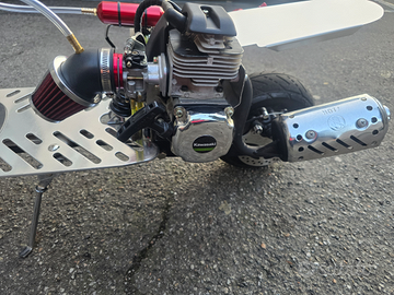 Come da foto vendo splendido monopattino a motore a scoppio 50cc. Nuovo, solo collaudato sound spettacolare veloce max 80kmh.