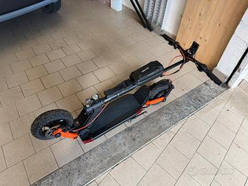 Vendo causa inutilizzo monopattino elettrico prodotto dalla JOYOR modello S8 - Z BK con motore da 600W e batteria da 48V e 26AH con circa 90 km di autonomia. Il mezzo ha una ventina di km di utilizzo ed è stato acquistato approssimativamente 5 mesi fa. Le caratteristiche tecniche sono: - tre velocita (max 55 km/h) - doppia sospensione - doppio freno a disco - trazione posteriore - indicatori di direzione - clacson - luci posteriori ed anteriori - piegabile per il trasporto Oltre al corredo di serie lo scooter ha installato un’antifurto elettronico blocca motore e con sirena (se il mezzo viene toccato si mette a suonare e blocca l’accensione), inoltre c’è installata una borsa porta oggetti da 3 litri di capacità. Il prezzo non è trattabile e non sono interessato a scambi di nessun genere.