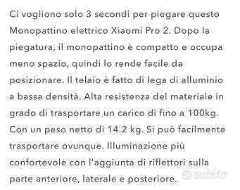 Vendo per inutilizzo, regalo mai utilizzato, NUOVO IMBALLATO MAI APERTO CON SIGILLO DI GARANZIA Modello PRO 2 in vendita a 549,90 su sito ufficiale Xiaomi.