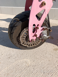 Vendo monopattino TDM RACING doppio freni a disco, ruote larghe ammortizzato anteriore e posteriore, richiudibile per trasporto, sellino regolabile in ottime condizioni generali batterie da sostituire