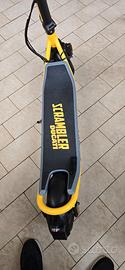 Vendesi e-scooter-monopattino elettrico (pari al nuovo), con borsa per manubrio, dotato di freni su entrambe le ruote, di un cicalino, di indicatori di direzione e di luci anteriori bianche o gialle e di luci posteriori rosse. La batteria potenziata è da 36V, 12.5Ah e 450 Wh. Con una piena carica e una velocità media di 15 km/h è possibile percorrere fino a 40-45 km. Il valore varia a seconda del peso del conducente, delle condizioni della strada, della temperatura esterna, ecc. E' possibile monitorare con un rapido colpo d'occhio il livello della batteria dal display.