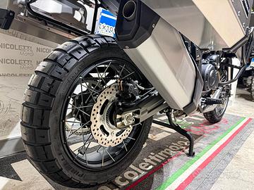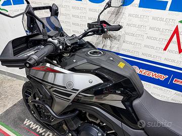 Per garantirti il massimo controllo e comfort, T1002VX è dotata di sospensioni KYB ad alte prestazioni, regolabili sia all'anteriore che al posteriore. La forcella rovesciata da 43 mm - con ben 183,8 mm di escursione - e il monoammortizzatore posteriore con leveraggi progressivi, garantiscono un'eccellente assorbimento delle asperità, mantenendo stabilità e precisione anche alle alte velocità.Impianto Frenante ad Alte Prestazioni con ABS Pro