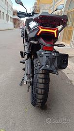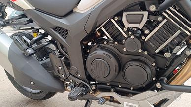 La Morbidelli T1002VX è pensata per gli avventurieri che vogliono superare ogni limite. Con il suo motore V-Twin a 80 gradi da 997 cm³, offre un equilibrio perfetto tra potenza e controllo, garantendo un'esperienza di guida impareggiabile su qualsiasi terreno. Dotata di 4 modalità di guida, sospensioni KYB regolabili e un sistema di freni J.Juan con ABS Bosch Pro, la T1002VX assicura massima sicurezza e una risposta precisa in ogni curva. Inoltre, grazie al sistema Morbidelli Connect, sarai sempre connesso e in controllo della tua moto. Per chi desidera esplorare senza confini, la T1002VX è progettata per andare oltre l'ordinario.Esclusivo Motore V-Twin a 80 Gradi Il cuore della T1002VX è il suo motore V-Twin a 80 gradi da 997 cm³, in grado di erogare 87,2 CV a 7500 giri/min e una coppia massima di 89 N·m a 5250 giri/min. Questa configurazione garantisce una potenza fluida e progressiva, ideale per terreni impegnativi e lunghi viaggi, distinguendosi dai comuni motori in linea nel suo segmento anche per la timbrica del propulsore. Impianto Frenante ad Alte Prestazioni con ABS Pro La sicurezza è una priorità con l'impianto frenante della T1002VX. Dotata di doppio disco flottante anteriore da 320 mm e disco posteriore da 260 mm, entrambi forniti da J.Juan, offre una potenza frenante superiore. Inoltre, il sistema Bosch ABS Pro, progettato per garantire una frenata stabile in curva, aumenta la sicurezza in situazioni di emergenza e su terreni difficili. Connettività Totale a Portata di Mano Il sistema Morbidelli Connect permette ai piloti di rimanere sempre connessi alla propria motocicletta tramite un'applicazione mobile avanzata. Grazie alla connettività integrata, gli utenti possono accedere a un'ampia gamma di informazioni in tempo reale, statistiche di guida, cronologia dei viaggi e avvisi di sicurezza. Inoltre, Morbidelli Connect offre la possibilità di impostare promemoria per la manutenzione, ricevere notifiche in caso di movimenti non autorizzati della mot