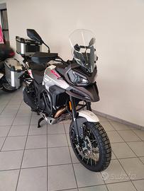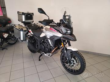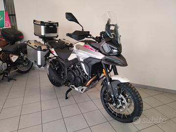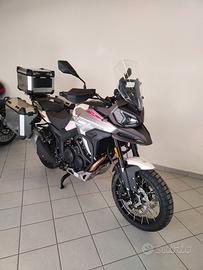 Full Optional di serie:-Frizione antisaltellamento-Cavalletto centrale-Cerchi tubeless-Barre paratelaio-Capacità serbatoio: 20 litri-Velocità Max: 198 km/hEsclusivo Motore V-Twin a 80 GradiIl cuore della T1002VX è il suo motore V-Twin a 80 gradi da 997 cm³Questa configurazione garantisce una potenza fluida e progressiva, ideale per terreni impegnativi e lunghi viaggi, distinguendosi dai comuni motori in linea nel suo segmento anche per la timbrica del propulsoreSospensioni KYB RegolabiliPer garantire il massimo controllo e comfort, la T1002VX è dotata di sospensioni KYB ad alte prestazioni, regolabili sia nella parte anteriore che posteriore. La forcella rovesciata da 43 mm con 183,8 mm di escursione nella parte anteriore e il sistema di sospensione posteriore multi-link offrono un'assorbimento preciso delle asperità Impianto Frenante ad AltePrestazioni con ABS Pro La sicurezza è una priorità con l'impianto frenante della T1002VX. Dotata di doppio disco flottante anteriore da 320 mm e disco posteriore da 260 mm, entrambi forniti da J.Juan, offre una potenza frenante superiore. Inoltre, il sistema Bosch ABS Pro, progettato per garantire una frenata stabile in curva, aumenta la sicurezza in situazioni di emergenza e su terreni difficili Modalità di Guida IntelligentiLa T1002VX offre quattro modalità di guida adattabili a diverse condizioni: Standard, Sport, Rain e Off-Road. Queste modalità regolano la risposta dell'acceleratore e la possibilità di escludere l'ABS, offrendo un'esperienza personalizzata per il pilota, sia su strada che in fuoristrada. Comfort in Qualsiasi Clima: Sella e Manopole Riscaldate, oltre al parabrezza regolabile ed ai paramani di serie, la T1002VX è dotata di cruise control, indicatore pressione pneumatici ecc..