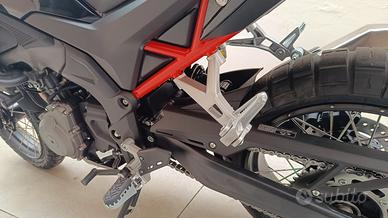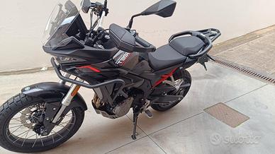 La nuova Morbidelli T352X è la tua prima vera moto adventure: potente, connessa e pronta a tutto. Il suo bicilindrico in linea da 349 cc eroga 41,5 CV, regalando una risposta progressiva e un sound distintivo che ispirano fiducia a ogni rotazione dell'acceleratore. Il peso di 180 kg in ordine di marcia, la rende leggera, bilanciata e accessibile a motociclisti di ogni esperienza. Le sospensioni a lunga escursione, l'ABS Bosch con modalità Off-road, i pneumatici Pirelli tubeless e i cerchi a raggi assicurano controllo e sicurezza su ogni tipo di terreno. Dispone di tre modalità di guida, traction control, TPMS e un display TFT verticale da 7" in stile rally integrato con il sistema Morbidelli Connect. T352X è la trail versatile, completa ed emozionante, pronta per tracciare i tuoi sogni, ovunque ti porti il sentiero.Freni con ABS Bosch con modalità Off-Road T352X monta un impianto frenante con disco anteriore flottante da 300 mm e disco posteriore da 240 mm, assistito da ABS Bosch escludibile al posteriore nel riding mode "Off-Road". Avventure bicilindriche con potenza, coppia e autonomia T352X monta un bicilindrico in linea da 349,2 cc con distribuzione DOHC a 8 valvole e raffreddamento a liquido. Sprigiona 41,5 CV a 10.500 giri e 31,5 Nm a 8.500 giri, con una risposta progressiva e lineare che si adatta bene alle salite più ripide, ai sorpassi e ai viaggi a pieno carico. La sua architettura assicura un ottimo equilibrio dinamico e un sound pieno, mentre i consumi ridotti -- appena 4,3 L/100 km -- garantiscono grande autonomia e costi di gestione contenuti.