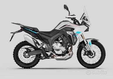 La nuova Morbidelli T502X unisce design italiano a prestazioni pensate per l'avventura. Il bicilindrico in linea da 486 cc eroga 47,6 CV e 45 Nm di coppia, offrendo un'esperienza di guida fluida e coinvolgente, accessibile anche con patente A2. Con serbatoio da 18 litri, sospensioni a lunga escursione e cerchi a raggi con pneumatici Pirelli SCORPION Rally STR, puoi percorrere fino a 440 km tra strade e off-road con un solo pieno, sempre con pieno controllo. Il display TFT verticale da 7" in stile rally, con Morbidelli Connect e mirroring per la navigazione, ti permette di seguire il tuo istinto ad esplorare oltre il quotidiano e trasformarlo in uno stile di vita. Morbidelli T502X è il perfetto equilibrio tra design italiano e prestazioni pensate per l'avventura. Serbatoio da 18 litri, sospensioni a lunga escursione, connettività Morbidelli Connect e display TFT da 7" stile rally, per il massimo delle emozioni e del controllo su strada e off-road. Garanzia 3 anni Prezzo indicato Franco Concessionario