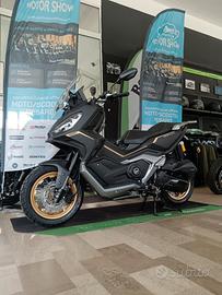 Ruote raggiate e gomme ibride per prestazioni urbane efuoristrada (da 14" anteriore e da 13" posteriore); Design Robusto eAvventuriero; Posizione di guida rialzata e confortevole (altezza sella di 870mm); Display TFT a colori da 7'': Chiarezza e tecnologia avanzata; Sospensioniperformanti per comfort e stabilità; Sospensioni posteriori regolabili ecomfort ottimizzato; Controllo di trazione di serie; Sistema frenante dotato diABS; Motore raffreddato a liquido; Chiave keyless