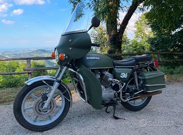 Morini 350 rarissima introvabile ex guardia forestale , mono sella ma omologata ugualmente x due posti , prima omologazione 1977 poi passata civile nel 2008.